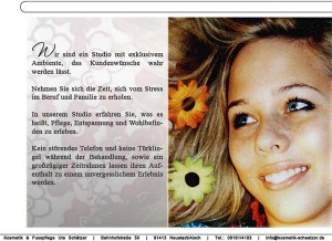 Kosmetik Schätzer Neustadt Aisch Kosmetikstudio Steigerwald-News . Sei immer informiert. Abonniere gerne den → Newsletter !